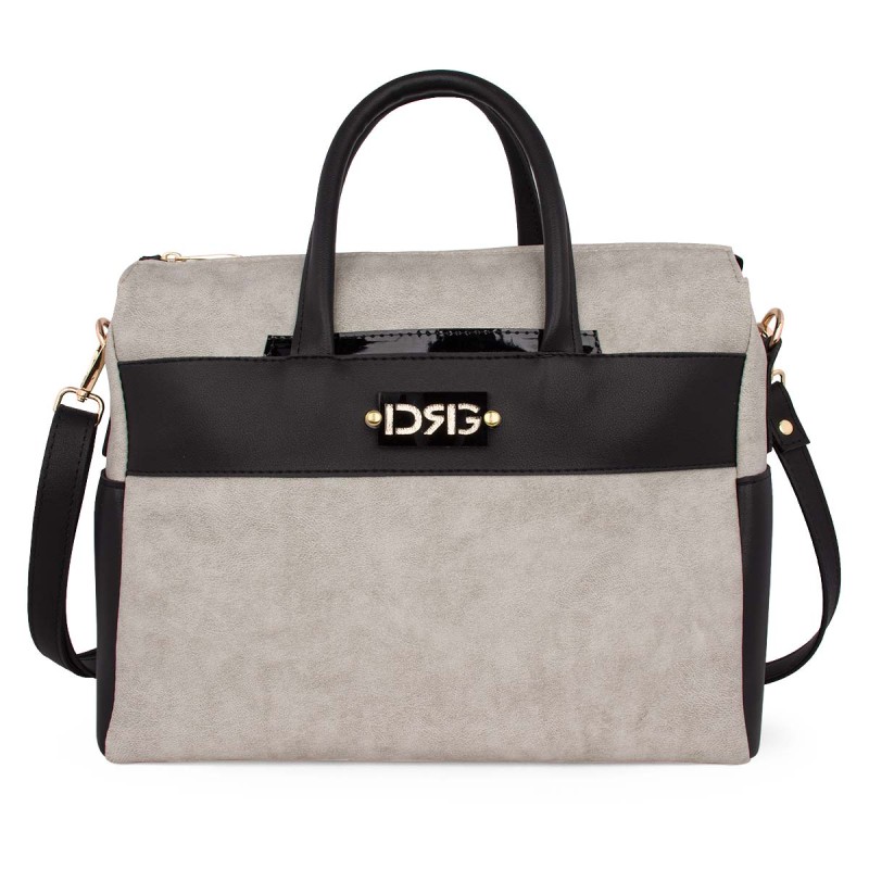 Ice-colored Shoulder Bag, made from eco-friendly leather with a leather absorbent and breathable lining. It features 2 internal pockets, one with a zipper. Adjustable and removable shoulder strap. Dimensions: H: 26cm, W: 34cm, D: 15cm.